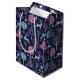 A modern abstract pattern with white deer leaping and prancing against a night blue background filled with turquoise blue and purple trees.
