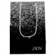 Sacola Para Presentes Média Monograma com Brilho Preto Prata Nome Inicial Femi