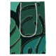 Abstrato ilustração das folhas gigantes da monstera tropical em cores verdes e turquesas e silhuetas douradas em fundo verde escuro para todos que gostam da natureza.