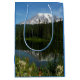 Sacola Para Presentes Média Monte Rainier Lake Refletido com flores selvagens