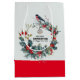Framboesas de Natal vermelhas e aquarelas verdes, ilustração com aquarelas brancas, com um belo Bulfinch vermelho. Texto personalizável Feliz Natal e feliz ano novo.