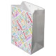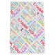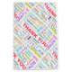 Um saco de presente colorido brilhante para acompanhar um obrigado seu presente. O design simples apresenta a palavra Obrigado repetida em diferentes cores e 20 idiomas diferentes.