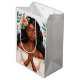 Saco de presentes apresenta uma ilustração floral de uma linda mulher negra espiritual com cabelo comprido, olhos fechados e palmas prensadas juntas numa posição de oração. A beleza de pele escura parece serena enquanto ela reza, e ela é enquadrada por uma variedade de flores e folhas. Ela veste um vestido de camponês. Trabalho de arte botânica espiritual feminina.