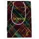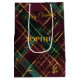 Sacola Para Presentes Média Natal brilhante, verde e Xadrez Dourada