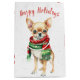 Sacola Para Presentes Média Natal Chihuahua Em Flocos De Neve