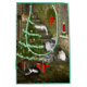 Os gatos múltiplos do kity recolhem em torno de uma escadaria com uma árvore de Natal e outras decorações do Natal alguns apenas que lazing em torno de outro a tentação de luta mas a ninguém no problema contudo no saco do presente de época natalícia do Natal dos amantes do gato