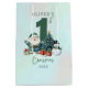Ilustração encantadora de aquarela celebrando o primeiro Natal de um bebê. Uma "1rua" verde ousada toma o palco central com o "Natal" elegantemente escrito por baixo. O snowman e o snowman, com um tom verde, acompanham uma árvore de Natal festiva e presentes alegres, criando uma cena de férias fascinante e balnear. Uma arte acolhedora e carinhosa que exude o espírito do Natal.
