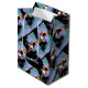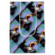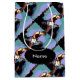Abstrato bloqueou o garoto e o violão. Em azul, verde-marinho e multicor. Com uma placa de identificação personalizável preta.