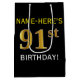 Sacola Para Presentes Média Negra, Faux Dourado 91rua Aniversário + Nome Perso