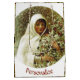 Uma bela ilustração vintage de uma garotinha na queda de neve segurando galhos sagrados. A personalização é opcional na frente e no verso.