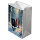 Sacola Para Presentes Média Newfoundland Dog Snowy Sleigh Ride Christmas