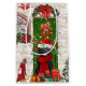 O Natal do Cachorro da Terra Nova sentado do lado de fora da casa decorada com a coroa de Natal, a árvore de Natal é uma ideia perfeita de presente de Natal para amantes de cães.