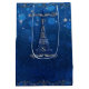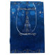 Sacola Para Presentes Média Noite em Paris sob as Estrelas Festa Azul Prata