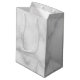 Adicione um toque pessoal ao seu casamento com a bolsa de presente de padrinhos de casamento personalizados. Este saco de presentes apresenta o nome personalizado do padrinho de casamento no estilo de fonte do script clássico da cinza com detalhes de casamento no estilo de fonte serif clássico da cinza e monograma no estilo de fonte serif clássica da cinza clara como fundo, em fundo de mármore branco. Também perfeito para o melhor homem, pai da noiva, porta-voz e muito mais.