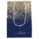 Saco de Presente Monograma de Glitter Azul Marinho e Dourado. Isso torna o presente perfeito para os 16 anos, casamento, chá de noiva, aniversário, chá de bebê ou festa de despedida de solteira para alguém que ama luxo e estilos chiques.