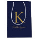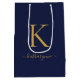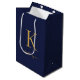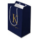 Sacola Para Presentes Média Nome Monograma Azul-Marinho Moderno Dourado