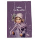Saco de presente de Natal nostálgico e Feliz Púrpura. Ilustração de uma garota angélica vestida de púrpura com flocos de neve descansando ao seu redor. Um saco luxuoso para o presente especial. Personalize com sua escolha de texto tanto na frente quanto no verso. Tenha um Feliz Natal Nostálgico. Disponível em cores, tamanhos e acabamentos diferentes. Aqui está uma cor roxa de saco-presente.