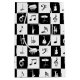 Um grande presente para todo o músico ou melómano, características deste design legal uma verificação preto e branco moderna e à moda esquadra o teste padrão com as várias notas musicais e os instrumentos musicais em cores alternas. Inclui pianos, trombetas, cilindros e saxofones com notas da música e clefs de triplo.