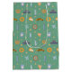 Traga vibrações da cidade festiva para o seu feriado... doando com o nosso Nova Iorque Festivo, Padrão, Pistachio, Saco de Presente Médio Verde. Mostrando a fantástica ilustração Big Apple, Big Love, este design divertido celebra a NYC com ícones amados — a Estátua da Liberdade, Empire State Building, One World Trade Center, táxi amarelo, pretzel quente, pizza, cheesecake e a clássica xícara de café de Nova York. O padrão brincalhão pop contra um fundo verde de pistachio quente, misturando alegria de férias com charme urbano. Perfeito para presentes de Natal, festas sazonais, e celebrações com uma reviravolta em Nova Iorque, esta bolsa de presentes de na moda é algo imperativo para amantes da cidade e para qualquer um que adora designs ousados e inspirados na pop arte.