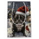 Este design festivo captura o espírito alegre da época de férias, apresentando um adorável filhote vestindo um chapéu de Papai Noel. O cachorro está aninhado numa terra maravilhosa de inverno, completo com um boneco de neve, uma árvore de Natal decorada, e presentes lindamente envoltos. Os flocos de neve caem suavemente, acrescentando um toque mágico à cena, enquanto as cores vibrantes das decorações de férias criam uma atmosfera quente e alegre.