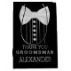 As bolsas do presente dos padrinhos de casamento. Agradeça aos homens em sua festa de casamento no estilo com um presente da apreciação envolvido em um padrinho de casamento personalizado ou em um melhor saco do presente do homem. Este saco de papel preto e branco caracteriza uma imagem de um laço branco com o branco abotoado abaixo da camisa do smoking e as palavras "agradecem-lhe padrinho de casamento" nas letras brancas da tipografia. Personalizado com nome de cada padrinho de casamento. Os nomes da noiva e dos noivos e a data do casamento são imprimidos na parte de trás do saco. O saco do presente da amostra é mostrado com um fundo colorido preto. Personalize a cor do fundo, a cor de texto e a cor da pia batismal. Para ver uns padrinhos de casamento mais maravilhosos, o melhor homem ou as damas de honra que wedding o obrigado você presentes, visita por favor "a princesa de Hungarican" em zazzle.com/hungaricanprincess. Parabéns!