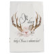 Enrole seus presentes de chá de fraldas ou favores em charme da floresta com este saco de presente de cor d'água "Oh Deer", com uma ilustração de cervos doce, moldada por delicadas flores de pincel e galhadas rústicas. Quer você esteja agradecendo convidados ou apresentando um presente especial para a futura mãe, este saco inspirado em vassoura adiciona um toque atencioso e na moda à sua celebração. Combine-o com a decoração correspondente a um tema coeso de floresta que é quente, caprichoso e maravilhosamente coordenado.