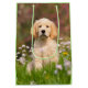 Ouro Retriever um cachorrinho num campo de Cuckoo Flower. Ele é um Goldie tão fofo, eu me diverti muito tirando fotos dele. Os Ouros são cães muito espertos e leais. Esta bolsa é uma ideia de presente para amantes de cachorro e de estimação. Uma foto de cachorro de olhos de cachorro tirada por Katho Menden.