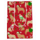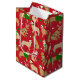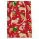 Cães de Natal bonitos em roupas festivas de férias. Ouro Retriever com casacos leves e médios ouros vestem chapéus de Santa, galhadas, suéteres em fundo vermelho com ornamentos espalhados.