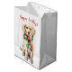 Um filhote de Ouro de Aquarelas no cachecol vermelho e verde de inverno.