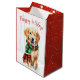 Sacola Para Presentes Média Ouro De Natal Retriever Em Flocos De Neve