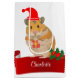 Esta adorável bolsa de presente de Natal personalizada apresenta um Ouro de Hamster fofo segurando um presente e vestindo um chapéu de Papai Noel contra um fundo branco com Holly. O nome pode ser alterado. Perfeito para entusiastas de Hamster de todas as idades.