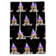 Um ouro bonito com chapéu de festa de aniversário, texto branco e confete colorido sobre fundo preto. A cor de fundo pode ser alterada.