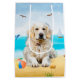 Sacola Para Presentes Média Ouro Retriever Dog na praia