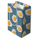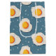 Um padrão de ovos fritos frescos em um fundo azul-céu. Bom dia café da manhã :)
