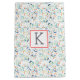 As modernas e elegantes aquarelas botânicas e bagas em um padrão uniforme com opção de mudar a cor de fundo. Monograma personalizado com sotaques vermelhos brancos e corais.