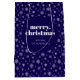 Sacola Para Presentes Média Padrão de Floco de Neve Azul-Marinho Branco Feliz