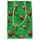 Sacola Para Presentes Média Padrão de Folhas Vermelhas e Bamboo