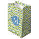 Sacola Para Presentes Média Padrão de Ikat Azul Verde Monograma