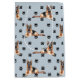 Uma imagem de um Cachorro German shepherd é a característica do padrão nesta bolsa de presente de todas as ocasiões. O cachorro veste uma gravata arco azul em meio a um padrão de estampas pretas, e é repetido em um fundo de cinza prateada.