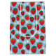 Um doce padrão repetido de morangos suculentos e as flores brancas da planta estão espalhadas por um fundo azul-céu. Esta bolsa de presentes é uma adição divertida à sua coleção de presentes para presentes de aniversário e chá, bem como para festas e festas de verão.