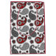 Padrão paisley de ornamentado em preto, branco e tons de cinza/cinza, acentuado com vermelho profundo, sobre fundo branco