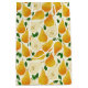 Um padrão vibrante de peras ouro-marrons em tons de amarelo, laranja e ouro, com folhas verdes profundas. Algumas das peras são divididas pela metade para mostrar as dentro e sementes suculentas. Esse padrão é limpo e moderno, usando ilustrações simplistas de fruta combinadas com texturas de aquarela e uma paleta de cores limitadas.