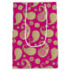 Sacola Para Presentes Média Padrão paisley, Dourado Suave em Rosa Fúcsia Inten