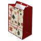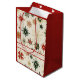 Sacola Para Presentes Média Padrões Elegantes Dourados e Flocos de Neve Vermel