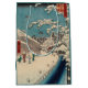 Esta imagem é baseada na impressão ukiyo-e de Utagawa Hiroshige chamada Atagoshita e Yabu Lane (1857), de Cem Vistas Famosas de Edo. Original do Instituto de Arte de Minneapolis.
