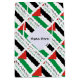 A bandeira palestina é constituída por três faixas horizontais de preto, branco e verde, com um triângulo vermelho do lado esquerdo. Nesta design, a bandeira contém a palavra PALESTINE, por baixo, nas cores da bandeira. É ladeado por efeito artístico. Um espaço branco de quadrados rabugentos ocupa um lugar para o seu nome adicionar um toque personalizado. Se você quiser criar um presente personalizado, basta adicionar o nome de outra pessoa.