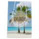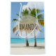 Saco de presentes com uma bela e tranquila fotografia de duas palmeiras sob um céu azul brilhante. Em pé numa praia tropical isolada com água turquesa calma.