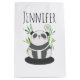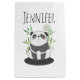 Saco de presente com ilustração de um urso panda preto e branco sentado em algum bambu verde com aquarela. Uma pequena bolha de fala com um dentro do coração. Design bonito com um panda expressando seu amor. Personalize com um nome.