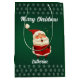 Torne seus presentes realmente especiais com esta bolsa de presente de Natal com um Papai Noel clássico. O fundo verde profundo com flocos de neve delicados adiciona um toque elegante, enquanto o tradicional design do Pai Natal traz a morna nostalgia das festas eternos. Os Papais noeis alegres em seu chapéu vermelho incorporam espírito festivo, alegria, e o entusiasmo da dádiva de Natal. Com a personalização, você pode adicionar um nome para criar um detalhe único e ponderado para seus entes queridos. Misturando tradição com um acabamento moderno, esse saco é perfeito para pequenas surpresas e presentes maiores.