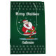 Destacem o encanto dos presentes de Natal com esta bolsa de presente de Natal personalizada com Papai Noel. O fundo verde profundo com flocos de neve delicados, combinado com o terno vermelho clássico dos Papais noeis, cria um aspecto eterno e elegante. A tipografia do feliz Natal acrescenta um toque contemporâneo, enquanto o moderno design torna-o adequado para a decoração tradicional e na moda. A personalização permite que você adicione um nome, fazer todos os atuais exclusivos e significativos. Mínimo, sazonal e cheio de calor festivo - esta bolsa garante que seus presentes se destacarão lindamente sob a árvore de Natal.